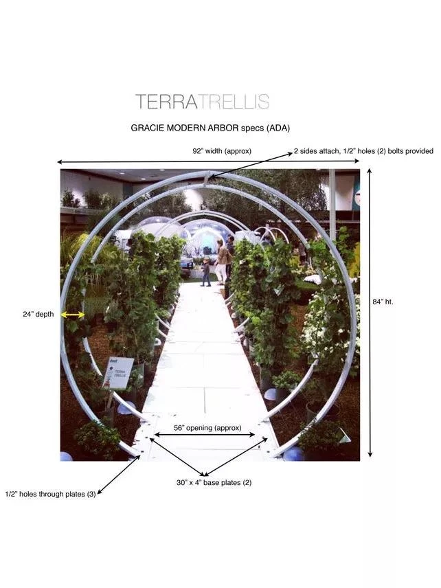 Featured in iconic public gardens, the grand Gracie Modern Arbor creates a stunning sculptural garden gateway whether supporting plants or left bare. Designed and hand-crafted in the U.S. from steel and stainless steel cable, finished in brilliant water-resistant powder-coated colors or a natural oxide patina. This contemporary moon gate is as sturdy as it is striking and doubles as a beautiful garden sculpture when plants are dormant. Train everything from climbing roses, clematis or sweet peas to squash, cherry tomatoes or cucumber. Base plate can be bolted to hardscape or staked into ground to create floating circle effect. Simple assembly.